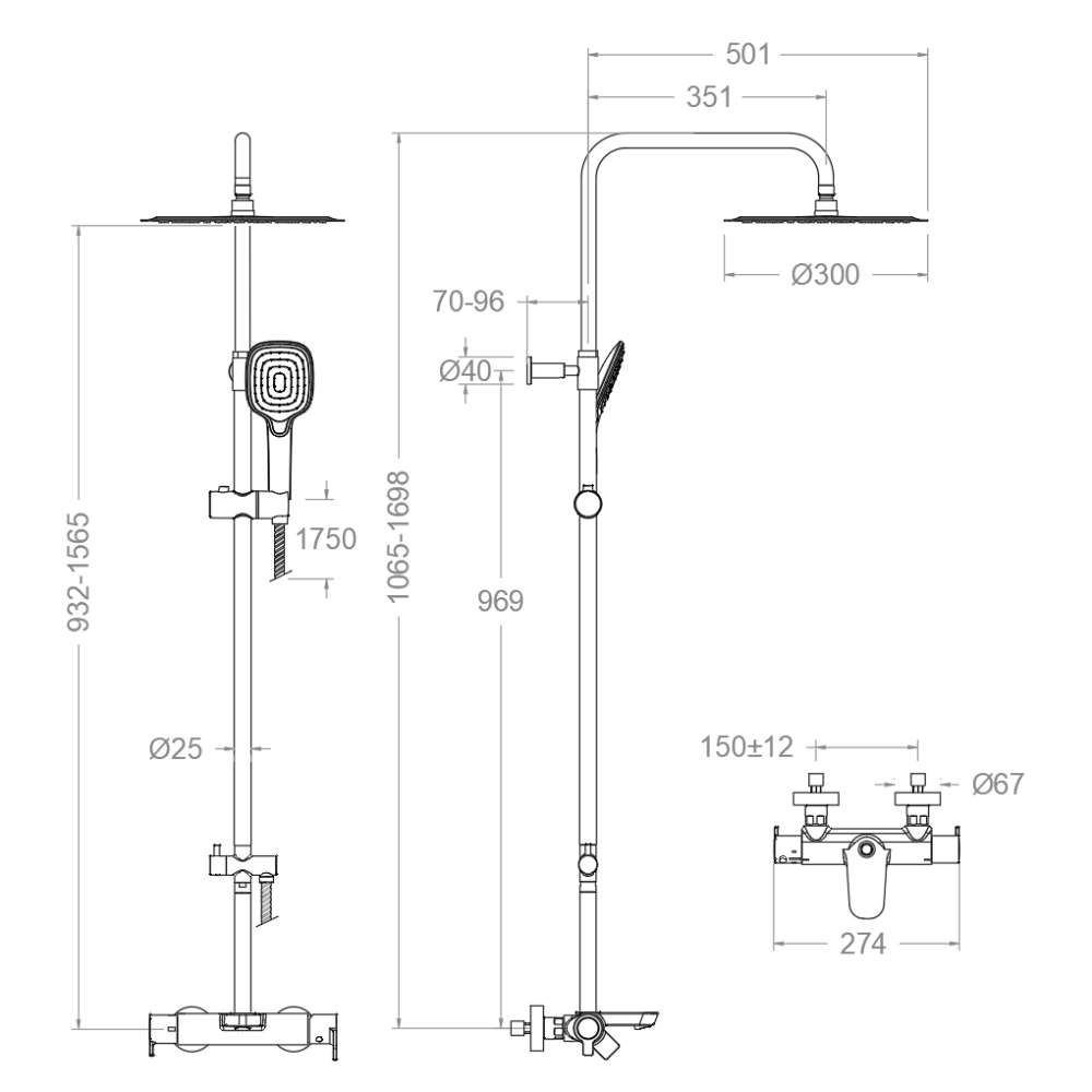 Душевая термостатическая система с изливом и с регулировкой высоты BLAUTHERM 945613RM300CUC медь